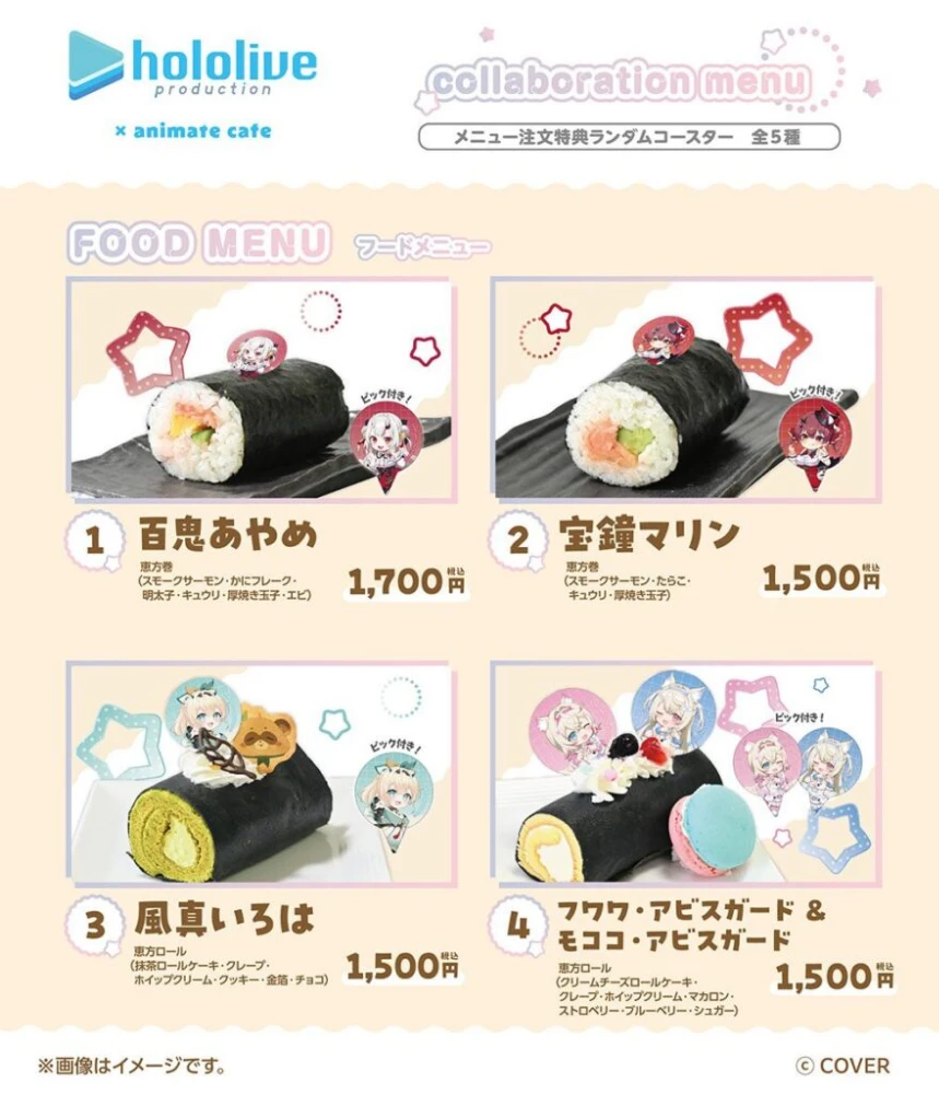 Dressed in newly designed, overly cute outfits, it seems that at the collaboration shop you can order ehomaki filled with good luck inspired by the members! Ehomaki usually use seafood or meat ingredients, but it’s nice that there are also dessert-style ehomaki for people who can’t eat those!