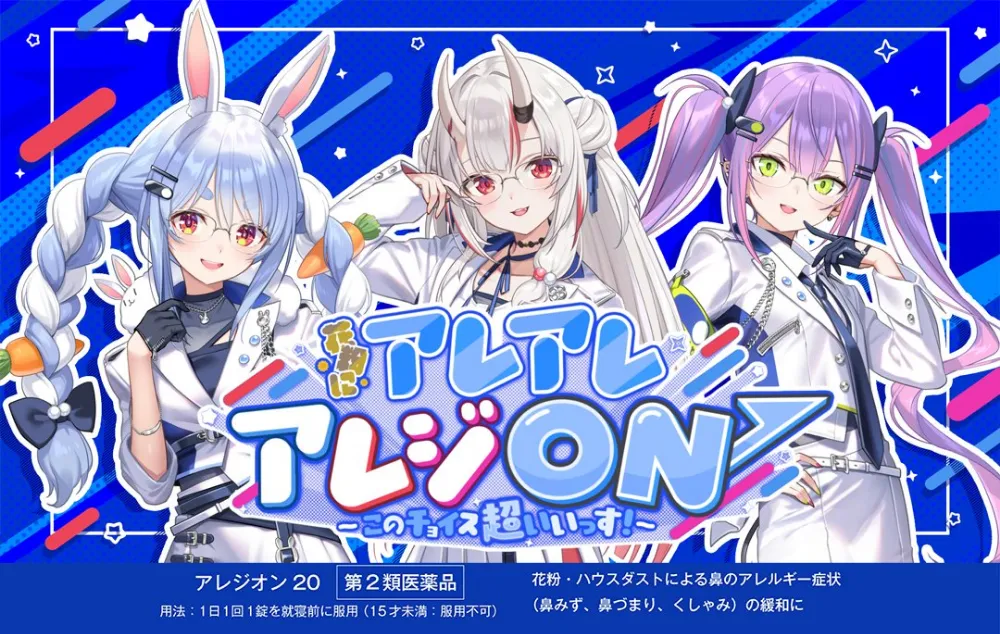 Right now in Japan! Spring is approaching and it’s the season when pollen scatters! It’s a tough season for hay fever sufferers, but...... those hololive members are collaborating with the allergy-specific rhinitis medicine ‘Alesion 20,’ and might help ease hay fever...... maybe!